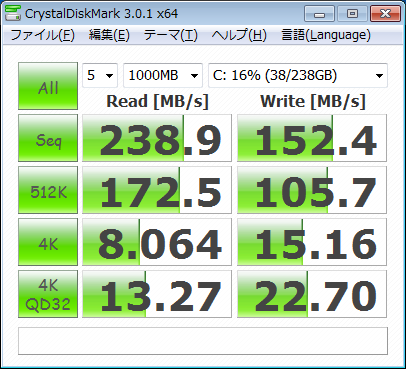 Test : 1000 MB [C: 15.9% (38.0/238.4 GB)] (x5)